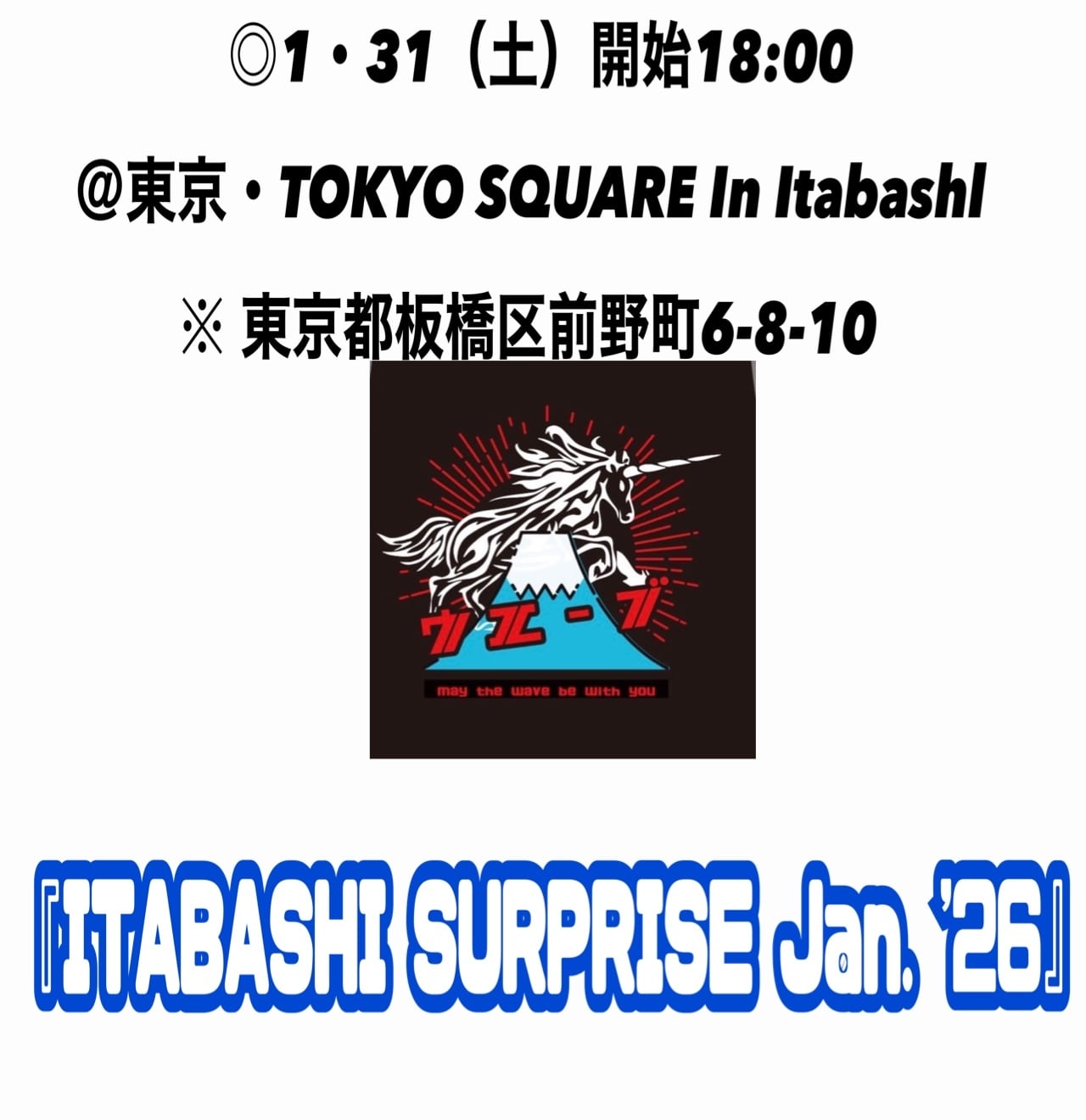◎1・31(土)開場17:30・開始18:00@東京・TOKYO SQUARE In Itabashl ※ 東京都